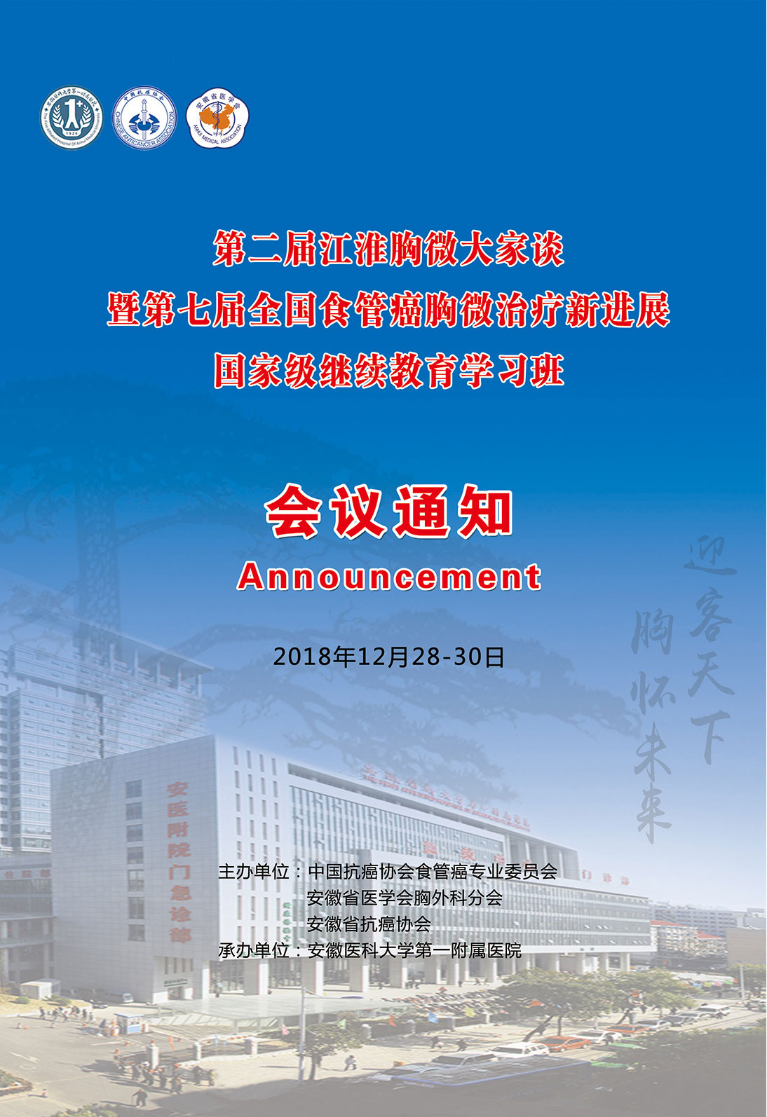 转播预告|“第二届江淮胸微大家谈暨第七届全国食管癌胸微治疗新进展国家级继续教育学习班”于2018年12月28-30日在安徽·合肥召开,本次会议由广州高通影像技术有限公司提供专业手术转播服务!敬请期待!